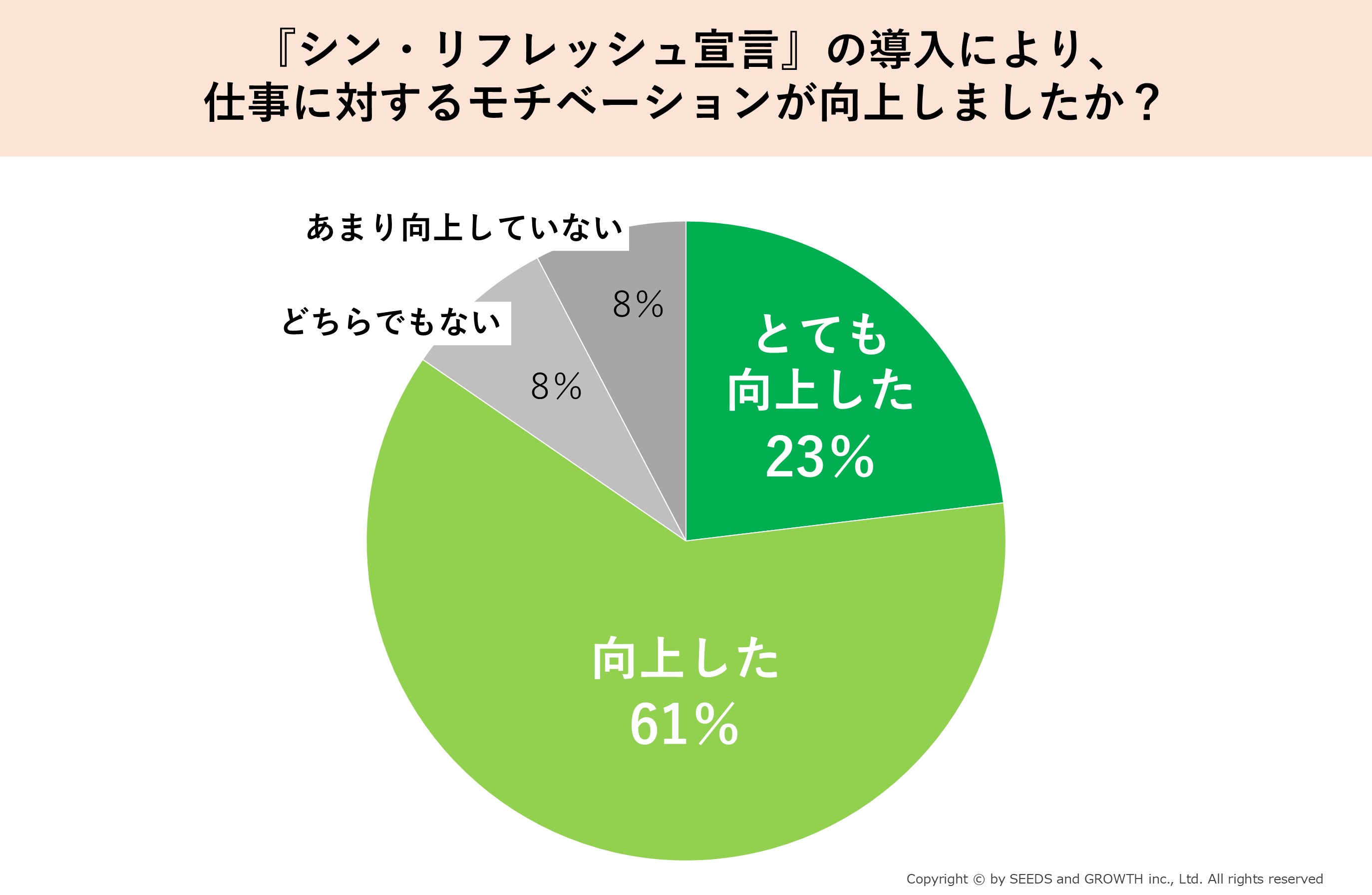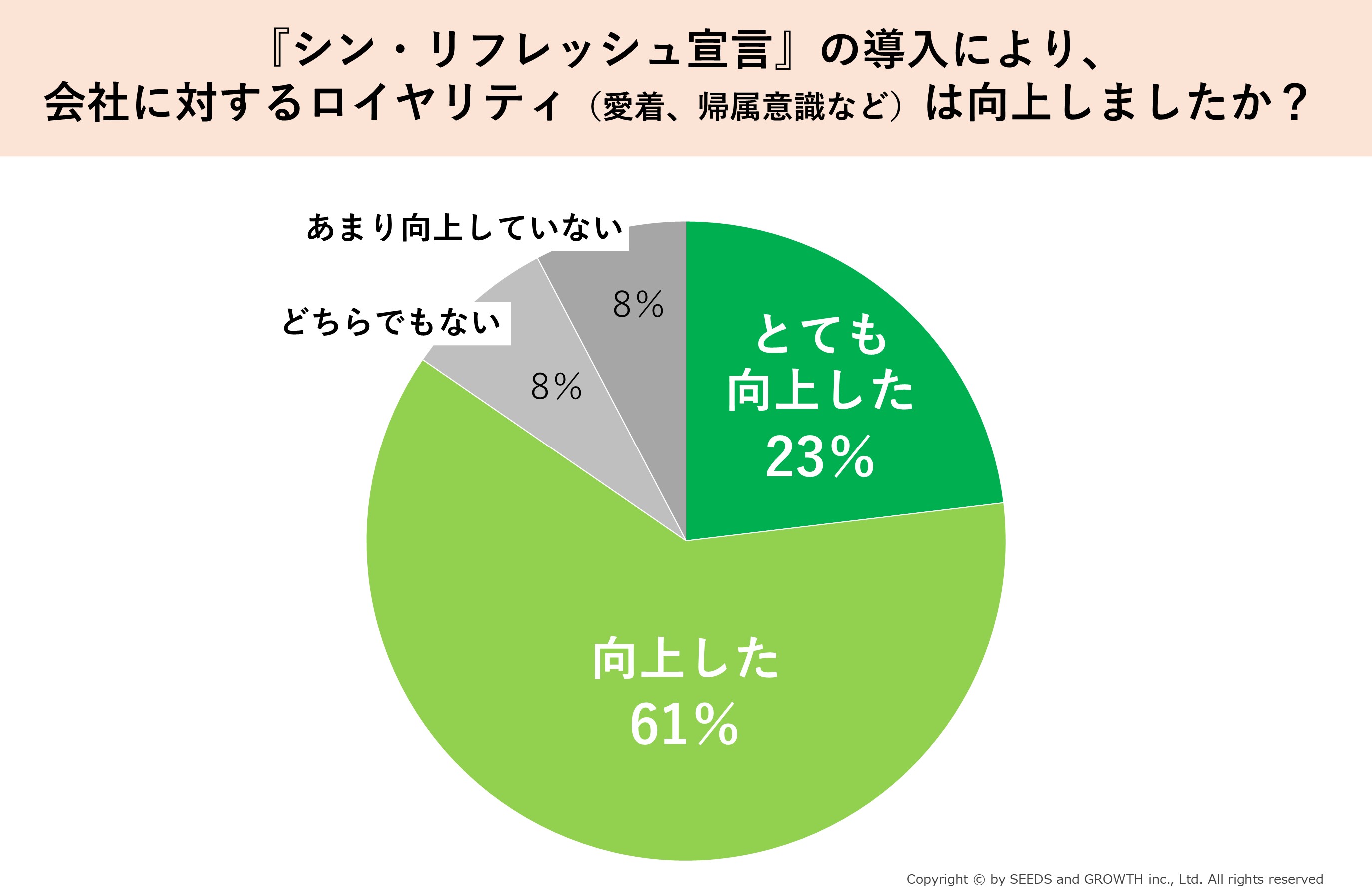 このたび当社では、2024年12月より運用を開始した福利厚生制度『シン・リフレッシュ宣言』に関する社内アンケートを実施し、社員の約8割が「会社に対するロイヤリティが向上した」「モチベーションが向上した」と回答する結果となりましたことをご報告いたします。