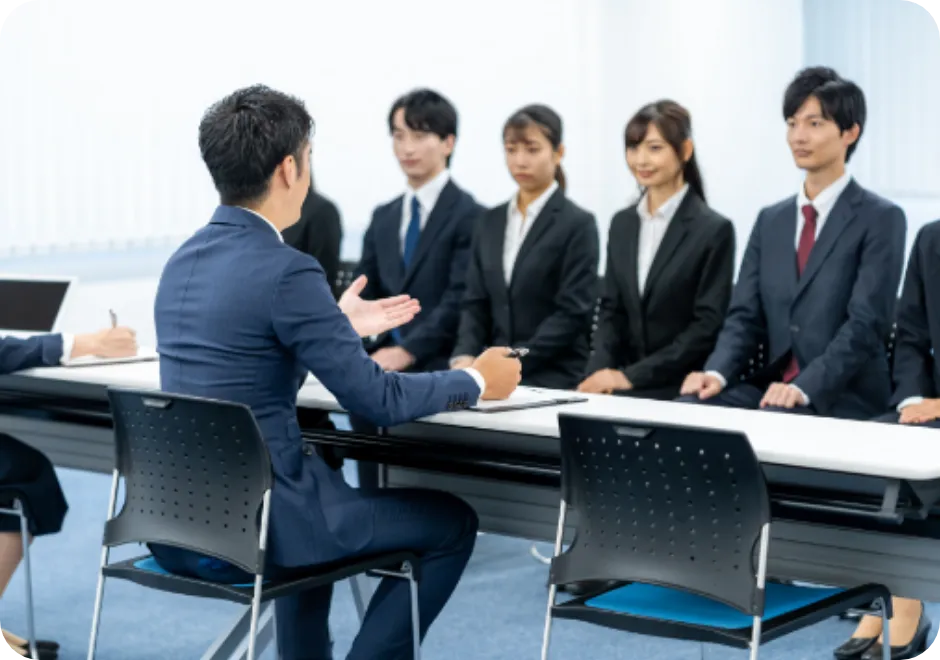 採用担当者一人ひとりが企業の≪人格≫を体現し、学生に一貫したメッセージを届けられるよう、実践的な研修を企画・実施します。面接スキルや学生対応だけでなく、自社の本質を言葉にする力を養い、確固たる採用組織づくりを支援します。